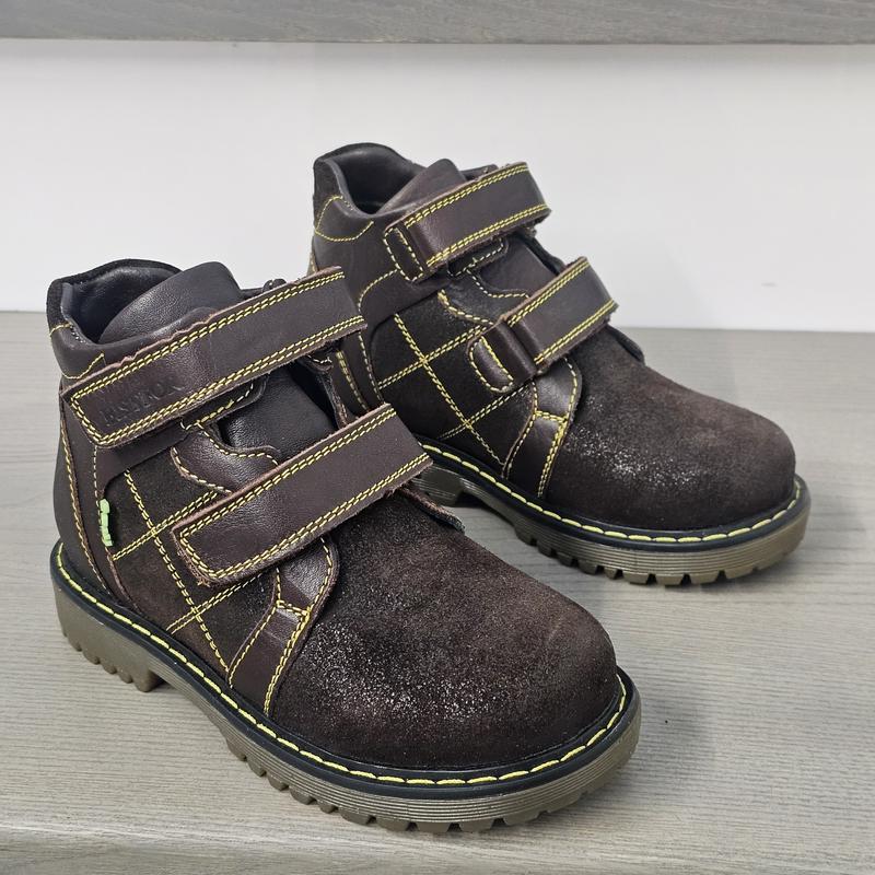 Демисезонные ортопедические ботинки из натуральной кожи, ортопедическая гелевая подошва, твердый задник, две липучки, внутри шерсть. Размеры и длина по стельке: 27-17см, 28-17.5см, 30-18.5см, 32-20см, 33-21см, 36-22.5см