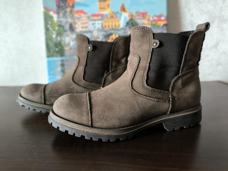 Деми сезонные ботинки - Челси из коричневой кожи с эластичными вставками по бокам. Обувь оснащена прочной резиновой подошвой
