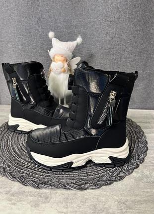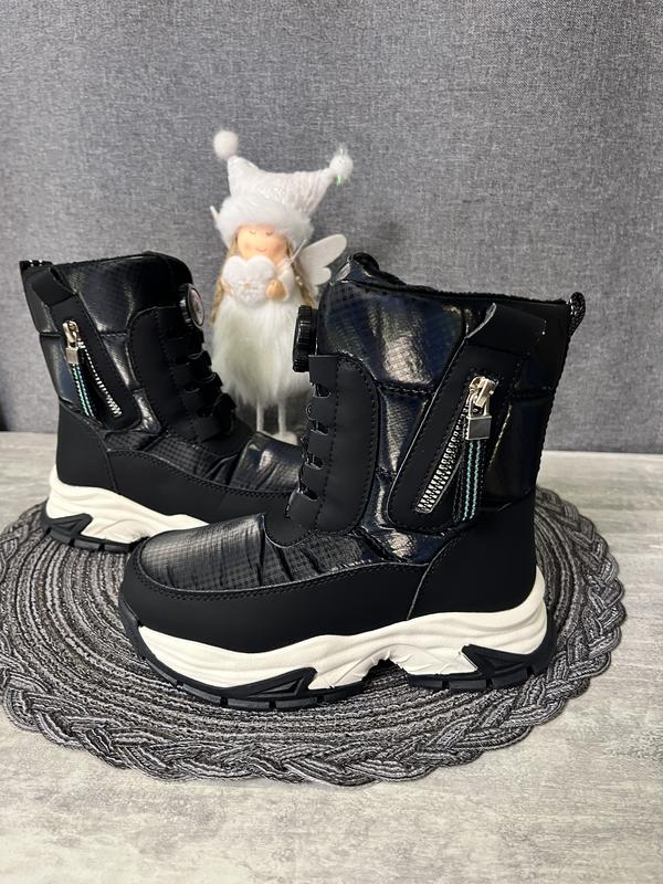 Верх виконаний з водонепроникної тканини та екошкіри.Всередині утеплені густим натуральним хутром!Устілка також утеплена! Міцна висока підошва з протекторами для захисту від ковзання!Нижня частина захищає взуття від збивання!Підошва- полегшена TPR. Дуже легенькі. Температурний режим до -30 27-18,2 см 28-18,5 см 29-19 см 30-19,7 см 31-20,5 см 32-21см