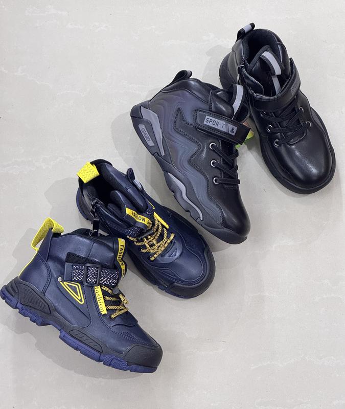 Сині Демі черевики від Кімбо с прорезиненим носком Матеріал зовні- штучна шкіра В середині- текстиль Присутня липучка, бокова молнія, шнуркі- резинки 28 розмір- 18 см 29 розмір- 19 см 30 розмір- 19,5 см Чорні Демі черевики для хлопчиків. Легко взуваються, завдяки липучці та еластичним шнукам, також є боковий замочок. Матеріал - екошкіра Всередині - всередині текстиль, устілка анатомічна Черевики легкі та мають гнуку підошву 29 розмір -18,5 см 30 розмір - 19 см 31 розмір - 19,5 см 32 розмір - 20 см