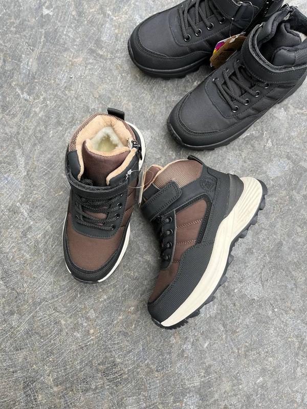 міцна протекторна підошва протиударний носок, навколо захищені від збивань фіксуються липучкою та замочком всередині утеплені хутром Заміри всередині: 34р-22,3см 35р-23,0см 36р-23,5см 37р-24,0см