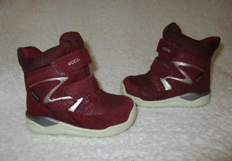 Ботинки детские зимние Ессо Gore Tex, р.22 (ст.14 см) кожа. Пр-во Индонезия. Верх кожа Утеплитель шерсть. Стелька термо, меховая на фольге. Мембрана Gore Tex, не промокают, сохраняют тепло. Застежки липучки. Отличные.