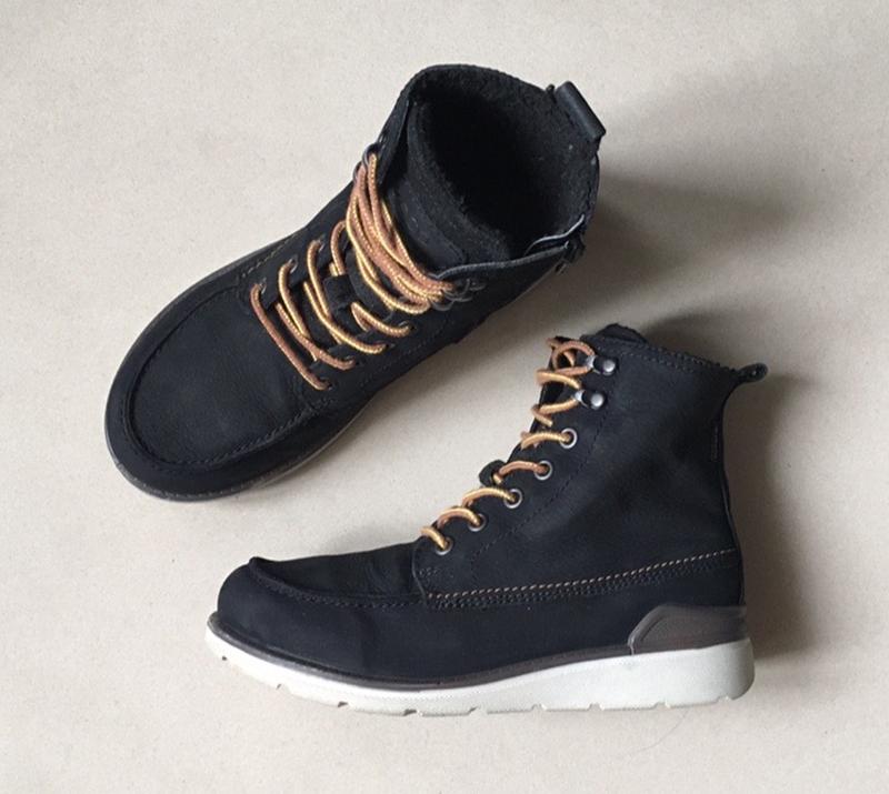 Оригінальні черевики датської фірми ECCO у відмінному стані. Made in Slovakia. Мембрана GORE-TEX. Натуральна шкіра. Бічна блискавка (не потрібно шнурувати). Носили дуже мало (дивіться фото підошви і середини).