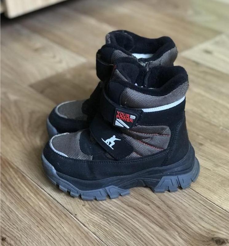 Термо чобітки для дітей, розмір 29, в чудовому стані і саме головне дуже теплі, з дефектів зломане вушко змійки на останньому фото видно, хоча змійкою можна не користуватися так як є застібка на липучках по переду, розмір в см по устілці 18,5