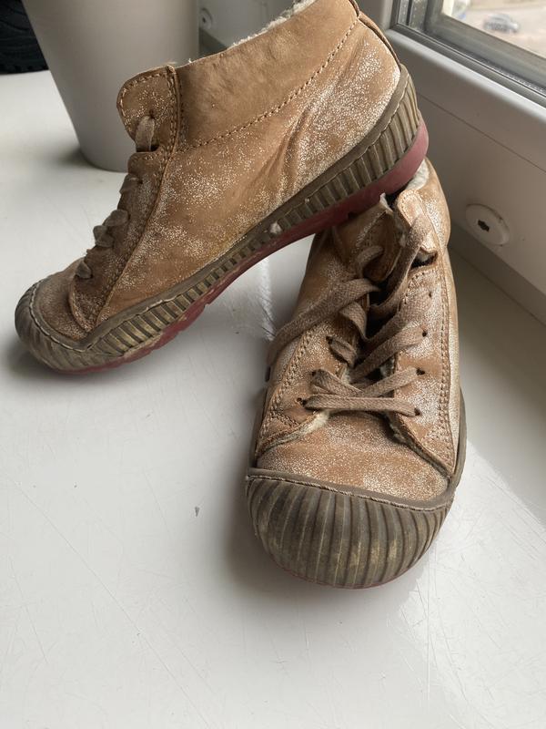 Черевики на хутрі( виглядає на овчину) Товста підошва Підійдуть і на холодну осінь і на теплу зиму) З недоліків тільки трохи звалялася шерсть Устілка не виймається тому розміри тільки по зовнішньому краю взуття Довжина - 23 см Ширина - 8,5 см
