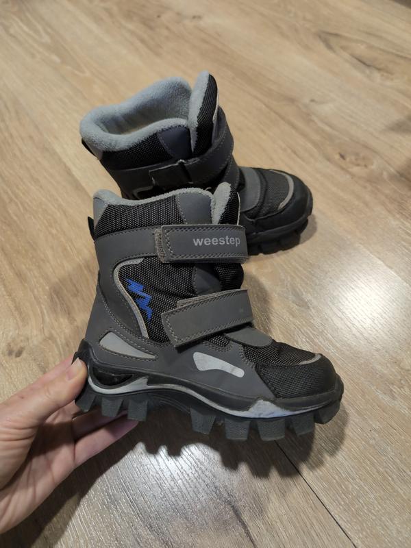Зимние Ботинки для мальчика в очень хорошем состоянии, не идеальны, но очень осторожны ножны ребенком. Липучки прочные, внутри мех. Подошва не скользкая. Стелька 18 см. У вас есть вопрос -прашивайте