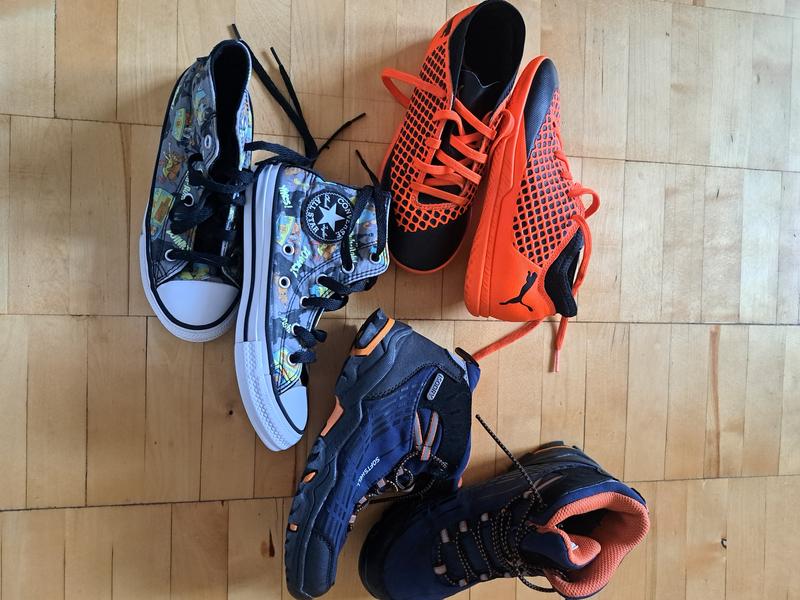 Обувь б/в идеальном состоянии, без дефектов. Mountain warehouse 460 грн, бутсы натуральная кожа 345 грн, converse оригинал лимитированная серия, светятся в темноте 345 грн, когда на вырост конверсы, то подойдут на ножку, которая сейчас 18-18,5 см, тоде на весну как раз в упоре будут.