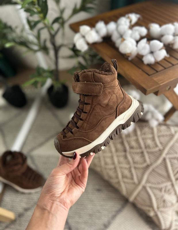 Стильные ботиночки в трендовом шоколадном цвете 🍫🤎 TM Flip.( Tom.m) Изготовлены из экозамши. Утепленные овчинкой 60 % и искусственным мехом 40%. Фиксируются шнуровками-резинками и липучкой.Присущая боковая замочка. Подошва антискользящая. Размер: 27-18,0 см 28-18,8 см 29-19,5 см/2пари 30-19,9 см/2пари 31-20,5 см 32-21,0 см 🛍️Цена Дроп 1430 грн Код 89