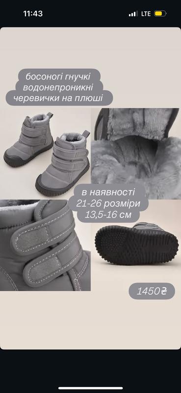 Нові непромокаючі босоногі черевики на мʼякенькому плюші. Дуже зручні , гнучкі , для анатомічно правильного формування стоп. в наявності 21,22,24, 25 розміри
