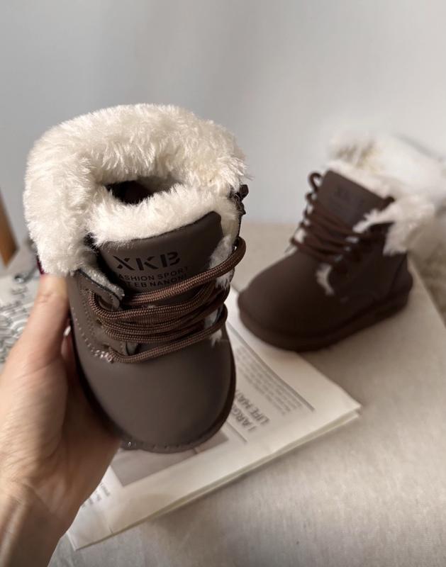 РОЗМІР 18 - устілка 12,5 см (5 шт) 19 - устілка 13 см (5 шт) 21 - устілка 13,5 см (5 шт) 22 - устілка 14 см (3 шт) 23 - устілка 14,5 см (5 шт) 24 - устілка 15 см (5 шт) 25 - устілка 15,5 см (5 шт) 26 - устілка 16 см (5 шт) 27 - устілка 16,5 см (5 шт) 28 - устілка 17 см (5 шт) 29 - устілка 17,5 см (6 шт) 30 - устілка 18 см (4 шт) Дитячі зимові черевики — теплі, зручні та стильні! 👢 Матеріал верху: якісна еко-шкіра — не промокає, легко чиститься та зберігає форму. 🐑 Утеплювач: м’яке та пухнасте хутро, яке забезпечує тепло навіть у мороз. 🔒 Застібка-блискавка: зручне взування без зайвих зусиль — ідеально для активних діток. 👟 Підошва: гнучка та нековзка, забезпечує безпеку під час прогулянок.