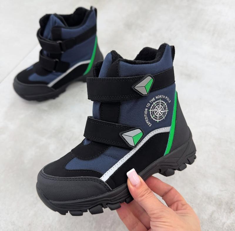 Легкі водонепроникні дутики зима Матеріал: - верх екошкіра та водовідштовхувальна тканина - всередині натуральне хутро - устілка хутро - підходять на високий підйом - легкі за вагою, гнучка підошва - застібка 2 липучки, язичок цільнокроєний, волога та сніг усередину чобітка не потраплятиме Розміри/довжина устілки: 28-18 см 30-19,5 см 31-20 см