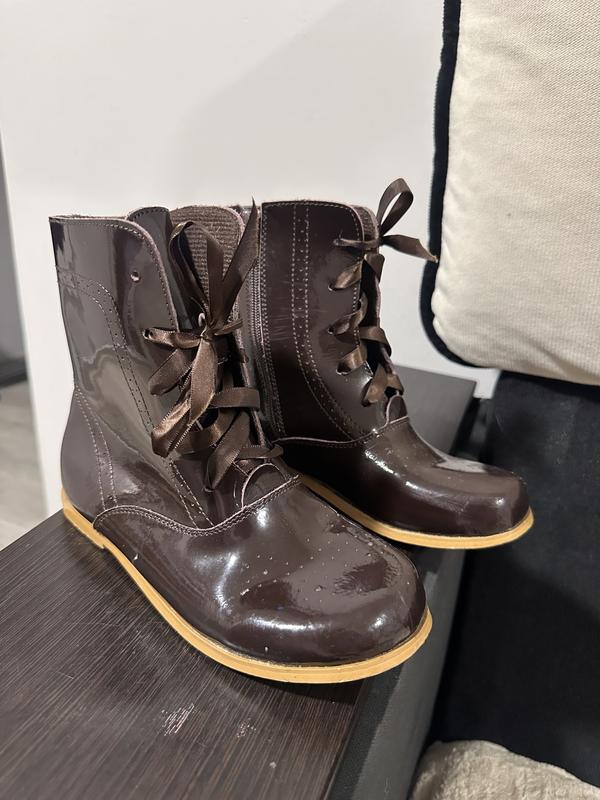Дитячі ботінки на шнурівці та з замочком Коричневого кольору розмір 35см Стан хороший