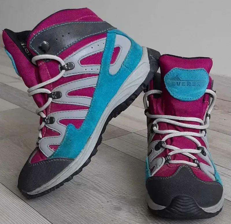 Кожаные ботинки EVEREST Хороший вариант как на каждый день, так и для походов, поездок на природу и в горы. Состояние очень хорошее, за выемкой де-не-де затёртого цвета на голубой замше. Материал: верх-натуральная замша, усаживающий специальный текстиль. Внутри: текстиль.Профессионльно прошитая обувь. Вид застежки: шнуровка. Износостойкая подошва. Сцепление отлично. Стелька 22,5 см.Размер 35. Полностью соответствуют фото!