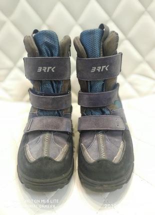 Теплые ботинки для мальчика идеально подойдут даже для самых холодных зим, Изготовлены из натуральных материалов, очень прочные и устойчивые к повреждениям, влаге и морозу. В середине есть утепление из натуральной овчины. Благодаря водонепроницаемой и дышащей мембране BRTKtex WATERPROOF, которая гарантирует полную защиту от воды, ноги вашего ребенка всегда будут сухими. Подошва изготовлена из прочных и качественных материалов, благодаря которым обувь имеет необычную легкость, мягкость и эластичность, а также обеспечивают максимальный комфорт для ходьбы.
