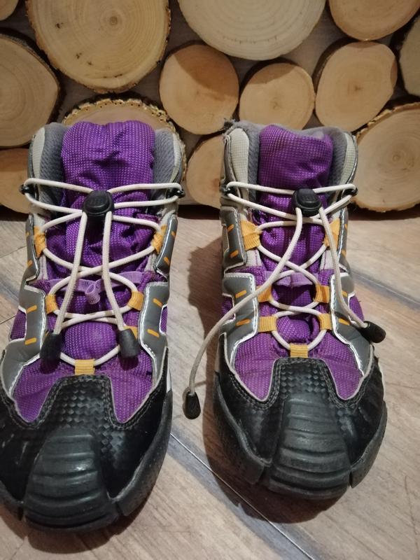 Легкі, теплі, комфортні. На сніг, дощ, на бруд По устілці 22,5 див. Носили мало, стан дуже хороший, але внутрішня частина біля кісточки посаталась(фото додаю)