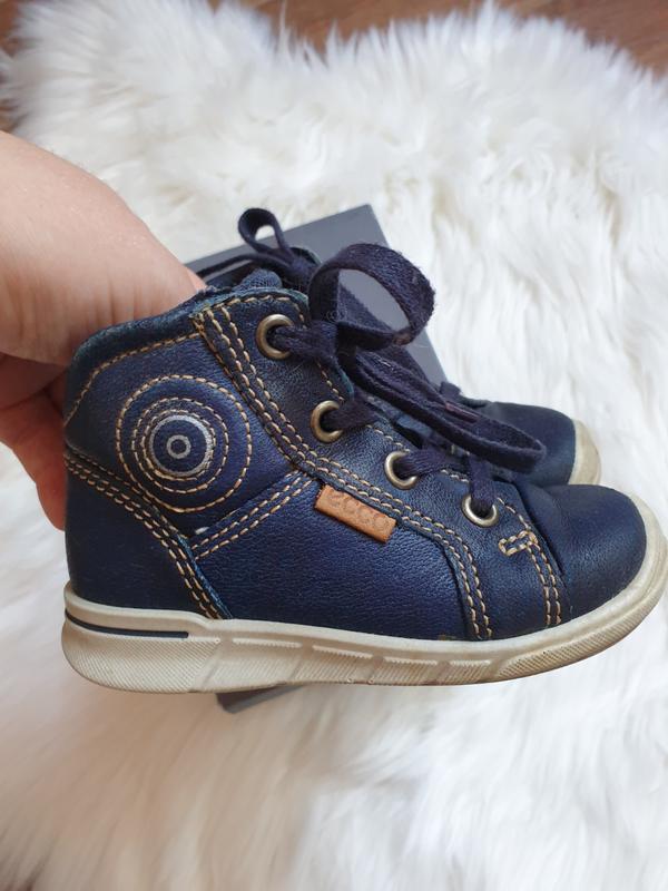 Ecco демисезонные ботинки 22 р 14,5 см. В очень хорошем состоянии, носились мало. Цвет - темно-синий. Кожаные, кожаная ортопедическая стелька, подкладка текстиль. Застежка молния, регулируются шнуровкой. Коробка в наличии.