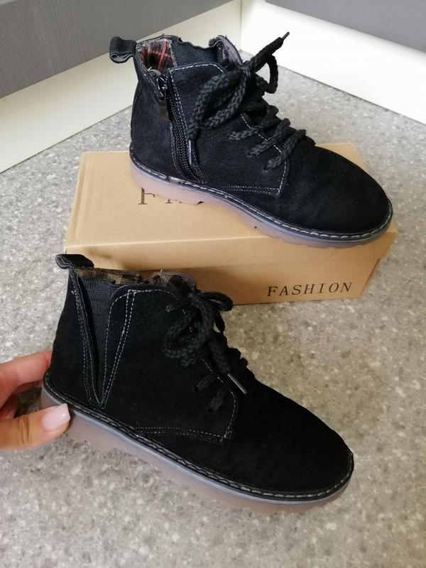 Колір чорний, штучний замш. Стан ідеальний, резинка трішки розтягнена. Розмір 30 устілка 19см