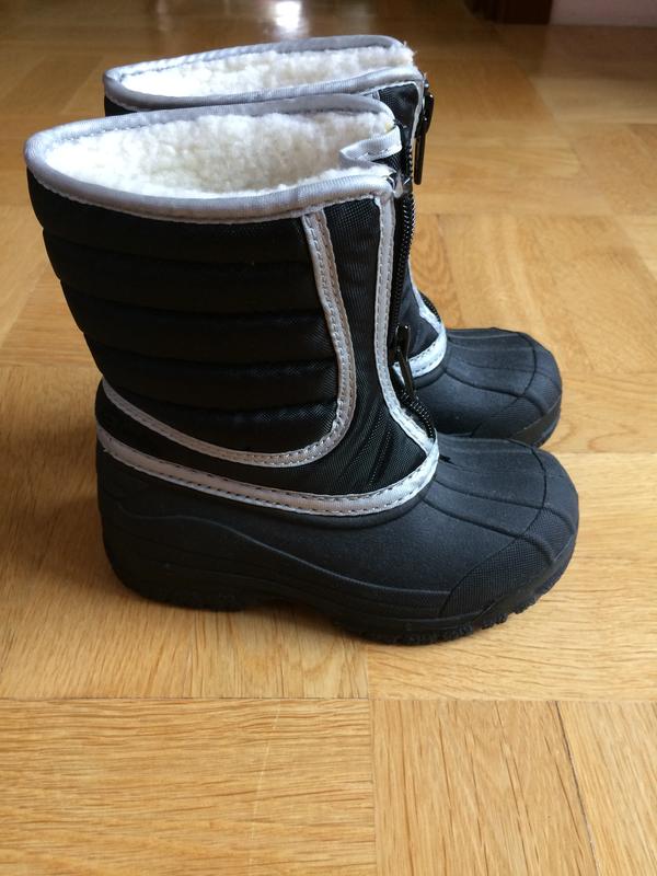 Новые ( прогадали с размером), фирма clarks, покупали на eBay. Размер 8 (наш 25), очень тёплые, внутри натуральный мех. Крепкая удобная молния. Водозащитные: низ и пошива резина.
