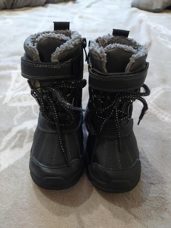 Розмір 23, по устілці 14см. Підійде на високий підйом ноги, так як на шнурівках і липучці. Чобітки б/у сірого кольору, прорезинена підошва( зимою не слизькі). В середині овчина, дуже теплі. Стан 10/10 взували 1 раз, так як зими і не було 😅