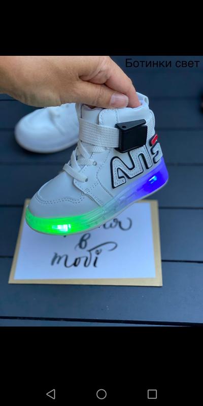 ✔ Стильные белые деми ботинки со светящейся подошвой! Отличное качество! Осенние- утепленные! Стелька- кожа, супинатор Застежка- сбоку змейка, спереди - шнуровка. ✔ Размеры: 21-13,0 22-13,5 23-13,9 24-14,5 25-15,0 26-15,5 ✔ Цена: 315 грн допустимая погрешность +- 2 мм