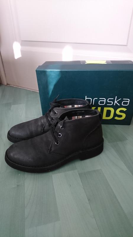 Демисезонные стильные, подходящие под любой вариант одежды, ботинки Braska, р. 37, большемерят ( 24,5 см по стельке). Верх - натуральный нубук, стелька - натуральная кожа, подкладка - текстиль , подошва - Эва. Очень легкие и удобные. Состояние очень хорошее.