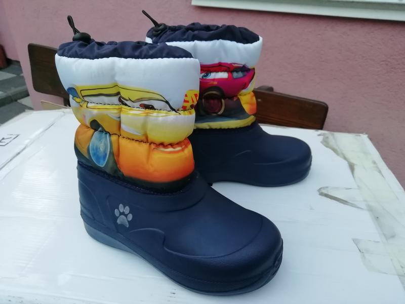 Классные детские сапожки .Обувь изготовлена из пенки ЭВА, поэтому ножки Вашего ребенка всегда будут сухими и теплыми. Сверху плащевка, принт Тачки Реально ОЧЕНЬ легкие( вес 100г) и не будут утомлять ножку. Хорошая система литья сапожка позволяет ребенку чувствовать себя комфортно в этих сапогах. Ножкам комфортно в обуви. Очень легко моются. Подошва рельефная, не скользкая. Внутри утеплитель - шерсть. Температурный режим - до минус 10С. Подошва: ПВХ Верх: непромокаемая плащевка. Верх затягивается шнурком, во избежание попадания снега и воды