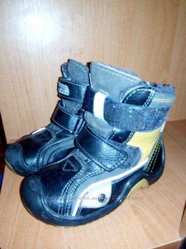 Детские сапожки. Натуральная кожа внутри цигейка. Нюанс один видно на фото. Носки не кожаные , а прорезиневанные и поэтому не сбиты, это очень хорошо для маленького ребёнка. Стелька 15 см. Лепучки в рабочем состоянии. Вообще состояние сапожек очень хорошее.