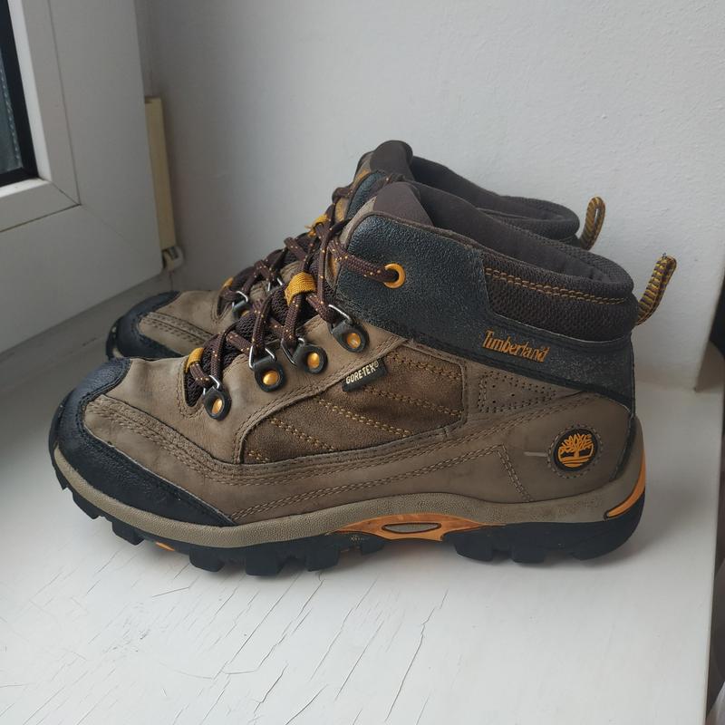 Кожаные ботинки Timberland 36 размера, стелька 23 см. от края до края, смотрите замер на фото. Материал верха натуральная кожа, нубук, натуральная замша. Носок и задник прорезиненый. В средине термоподкладка, текстиль. Застегиваются на шнуровке. На сезон осень, весна, теплая зима. Идеальное состояние, без изьянов и нюансов.