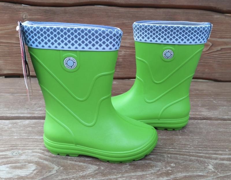 Demar VIBES гумові утеплені чоботи. Виготовлені з легкого матеріалу EVA {пінка}. Всередині є знімний носок, виготовлений з трикотажу. - Зроблені з матеріалу EVA - пінка - дуже легкі! - Еластична і не слизька підошва. - Знімний, змінний носок, який можна прати. - Легко мити і чистити. - Світловідбиваючі елементи - для безпеки дитини в темну пору доби. - Еластичний матеріал EVA - пінка добре адаптується по нозі-розширюється. - Легкі, як пух - вага пари в 24/25 розмірі всього 160 грам. Ідеальний варіант для школи, садіка або для гри у дворі! Салатові: 22-23, 24,25, 26-27, 28-29, 30-31, 32-33, 34-35