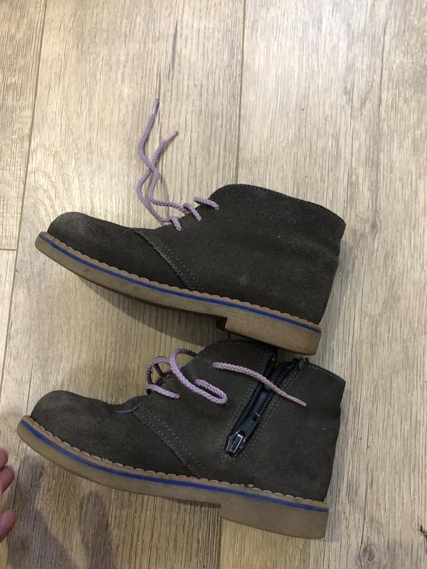 Підошва з супінатором ..гарний твердий заднік,натуральний замш ..ніде не поцарапані..носила дівчинка..але якщо шнурівку замінити , то буде і на хлопчика( там були голубі шнурки).. 28 розмір на 18,5-19 см ножку..