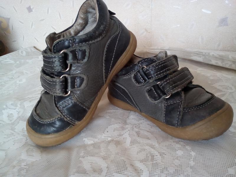 Коричневі шкіряні черевики . На липучках . Не стоптані , є потертості ( на фото видно ) . Устілка виймається . Довжина устілки 14 см . - 50 грн . Руді черевики . Ношені мало . Не стоптані .На липучках . Довжина устілки 14 см . - 65 грн .