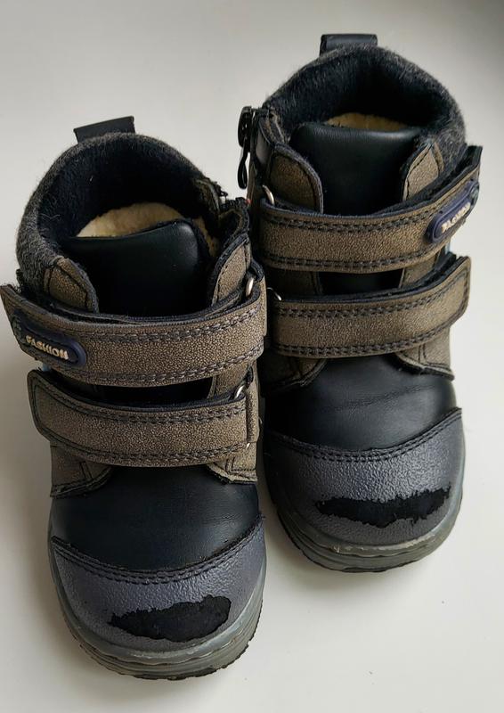 Ботинки зимние, на меху очень тёплые!Размер 22 ,по стельке 14см. Единственный дефект, это потёртости на носках. Пишите, отвечу на все вопросы)