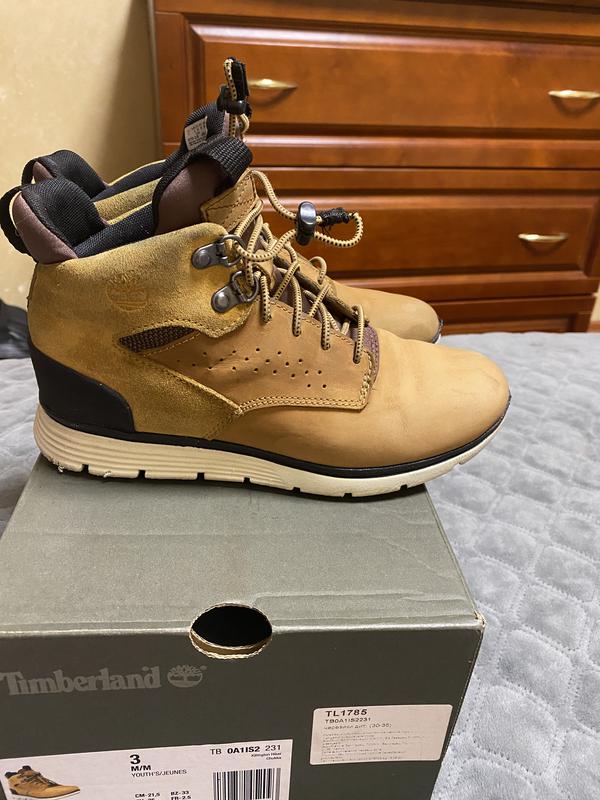 Демисезонные ботинки timberland оригинал очень классные не протирают тёплые до мороз даже на лёгкий минус подойдут с пропиткой водоотталкивающей очень легко моются сохнут за 2 минуты состояние хорошее видно на фото)размер 35