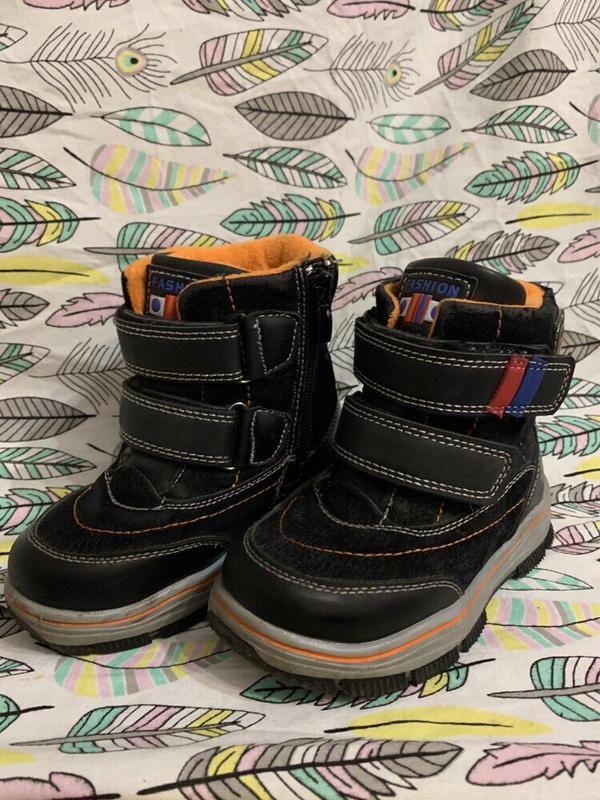 Зимние ботинки на мальчика. Верх натуральный замш, застежка на липучке и молнии. Внутри утеплитель овчина. Размер 25 ст. 14,5-15 см . Отправка новой укрпочтой.