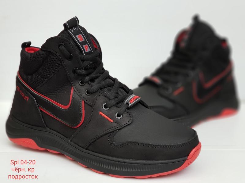 Зимові шкіряні черевики splinter на хлопчика чорні з червоним на шнурках шкіра натуральна...