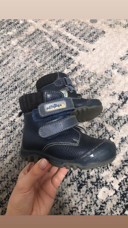 В хорошем состоянии. Натуральная кожа, внутри натуральная шерсть. Температурный режим до -10. Размер 22. Стелька 14 На носочках защита от сбивания.