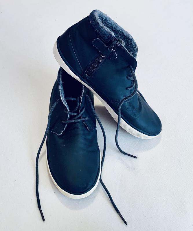 Супер стильные сникерсы для ребенка. Слегка завышенная модель. Верх - качественный кожезаменитель. Мягкая плюшевая подкладка и стелька внутри. Прочная подошва. Фиксируются на ножке с помощью шнуровки. Застежка: молния и клапан на липучке сбоку. Состав: кожезаменитель, текстиль, резина. Невероятно мягкие и эффектные ботиночки. Легко обувать. На ножке смотрятся очень стильно. Идеальный вариант для школы. Размер 38 (euro 5) 25 см Есть незначительные царапины на носках (последнее фото)