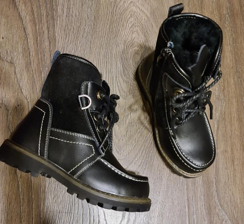 Детские ботиночки, сапожки, всё натуральное мех овчина, кожа, замш.. Удобно что есть и молния и шнуровка. Брали себе летом и не угадали с ногой к зиме :-)) Размер 28 стелька 17,5 см.