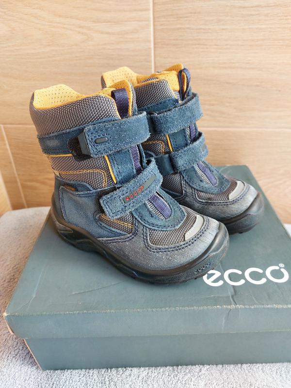 Отличные ботинки. Размер 26. Состояние очень хорошее, носили один сезон. Ecco - это технология GORE - TEX , позволяющая проникать воздуху во внутрь, и задерживать влагу снаружи, что особенно актуально в снежную ли дождливую погоду. Наружный материал изделия - натуральная кожа + текстиль, внутренняя отделка и стелька - текстиль,+утеплитель войлок. Стелька 16.9 Есть коробка