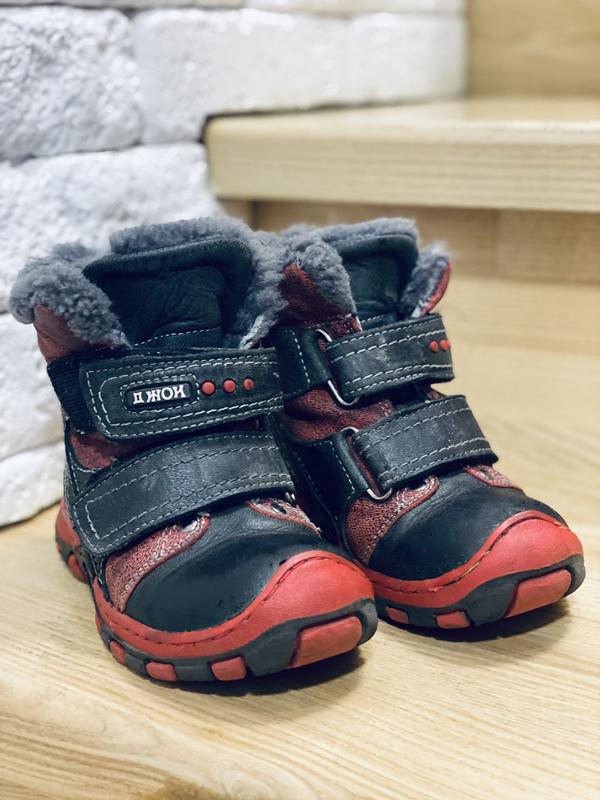 Ботиночки кожаные, на цыгейке. Не промокают, резиновая подошва. Размер указан 28. Есть незначительные следы носки. Ботинки неубиваемые.