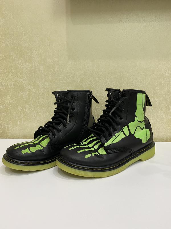 Наши любимые неубиваемые комфортные стильные ботиночки!!!!💚 Оригинал☝🏻 Стелька 22 см/EU34/UK2/ Верх кожа, внутри теплый текстиль Подошва фирменная масляная Ботиночки мягкие, не давили и не тёрли даже в долгой активной носке Ребёнок очень избирателен к обуви, носит только кроссовки, но на на ботинки жалоб я не услышала 😃 Скелет салатовый светится в темноте !!! 😮 👍 Оплата на карту Приват Банк Доставка Justin/Новая Почта/Укр Почта