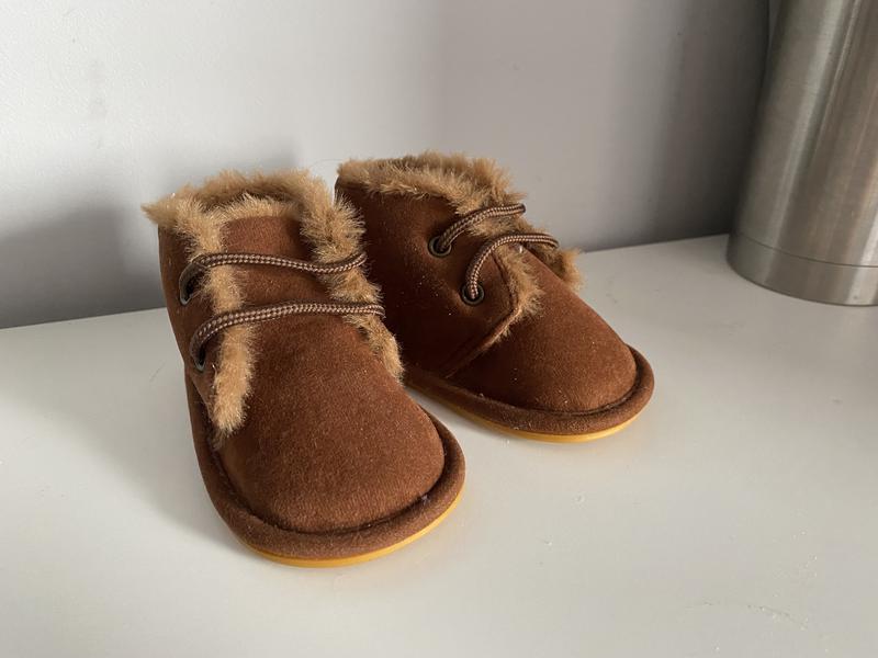 Продам наші дитячі черевички, можна сказати, що нові, бо тільки раз одягнули, покатались в колясці, не ходили. На нас вони замалі. Стан ідеальний, по фото видно. Всередині штучне хутро, теплі. На шнурівці. Довжина устілки 12 см, але якщо брати, то ніжна має бути максимум 11 см, щоб було дитині комфортно. Дуже стильно виглядають на нозі. Будуть питання - пишіть. А також дивіться інші мої оголошення.