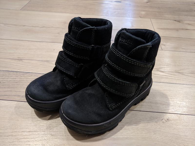 Очень стильные зимние термоботинки от известного бренда детской обуви Superfit. Подойдут как и под комбинезон, так и под джинсы, брюки. Верх натуральный нубук. После одного ребенка, носила один сезон, на смену с другими ботинками. Так что состояние отлично. С мембраной Gore-Tex – не промокают. На батарее не сушились, так что с мембраной все ок. Размер 25, по стельке 16.3 см