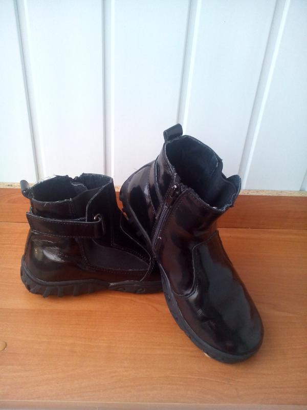 Демисезонные ботинки,материал-лакированная кожа Длинна стельки 21.5см Застежка молния с внутренней стороны +липучка с наружной