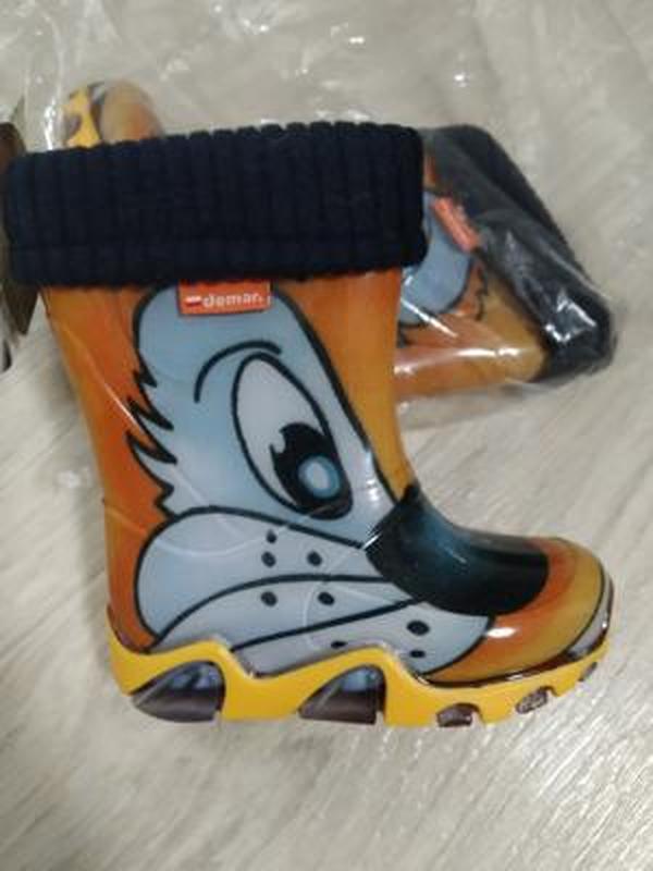 В НАЛИЧИИ МНОГО МОДЕЛЕК В РАЗНЫХ РАЗМЕРАХ Резиновые сапоги Демар со съемным флисовым носочком с температурным режимом до +5С на дождливую погоду и слякоть. Также эти сапоги пригодятся летом, когда на улице дождь. Высокая платформа, хороший протектор на подошве предотвращает скольжение и падение, уплотненный мысок предотвращает от ушибов пальцы ног, не сбивается и не теряет форму и внешний вид. Сапожки на 3 сезона: ВЕСНА - ЛЕТО - ОСЕНЬ! Ножки ваших деток будут всегда сухими и теплыми. Размер Длинна стельки 20/21 -13,5см 22/23 -14,5см 24/25 -16см 26/27-17,5см 28/29- 18.8см 30/31- 20см 32/33 - 21см 34/35- 22см