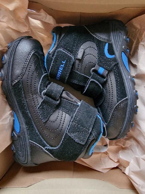 Нові теплющі чоботи Merrel, в оригінальній коробці, з бірками. всередині утеплювач із флісу Розмір 30, довжина устілки 19см Зручно одягати дитині самостійно, всього 2 липучки. Водонепроникні. Привезені з США