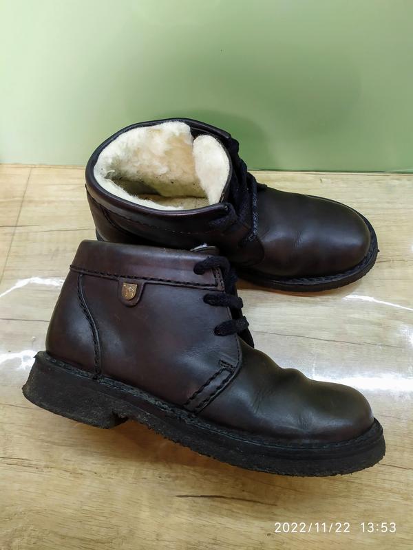Взуття бренду Camel виробляється на потужностях відомого німецького виробника Salamander. Про якість, стиль та надійність даного взуття не треба і говорити. Чудові, потужні зимові черевики. Натуральна шкіра, утеплення - вовна рейнських вівців, устілка повстяна (войлочна), фірмові шнурки з написом Camel. Підошва рифлена, тому зовсім не ковзає. Довжина устілки 23,5см. Унісекс. Колір темно- коричневий.