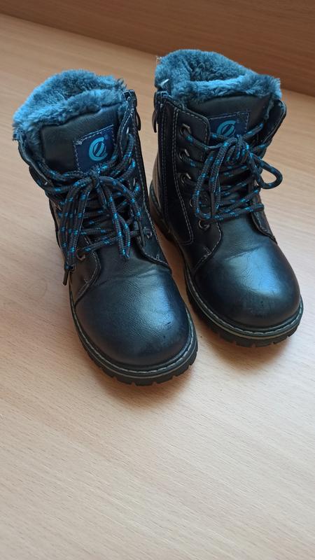 Кожаные сапожки на зиму для мальчика 28 размер, длина стельки 18.5 см, кожаные, внутри искусственная цигейка, ломтики в красивом состоянии, есть несколько потертостей.