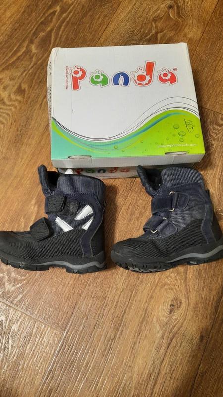 Очень теплые, удобные термо ботинки фирмы Panda для мальчика. Не промокают, влагоотталкивающие, легкие и комфортные. Состояние хорошее. Размер 26 Стелька 17 см