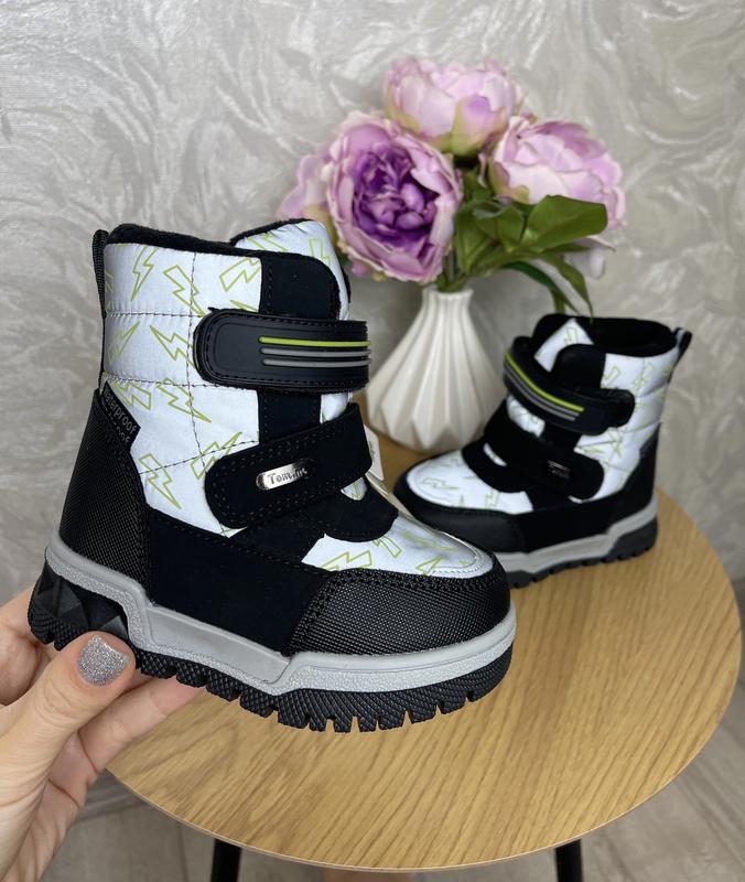 НОВИНКА ЗИМА 2024❄️❄️❄️ Зимове взуття від Tom.m Дуже гарні та стильні 😍 Дуже круто виглядають на ніжці 🤩 Верх з якісної екошкіри + плащівка,не промокають! Всередині-овчина (60 % натур ) Міцна підошва. Фіксація на 2 липучки 23р - 15 см 24р - 15.5 см 25р - 16.3 см 2шт 26р - 17 см 2шт 27р - 17.5 см 28р - 18 см о